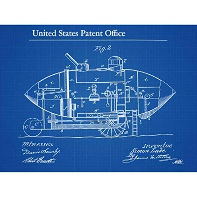 Artery8 Lake Submarine Vessel Interior 1897 Patent Plan Art Print Canvas Premium Wall Decor Poster Mural