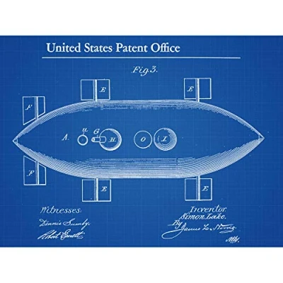 Artery8 Lake Submarine Vessel Top 1897 Patent Plan Art Print Canvas Premium Wall Decor Poster Mural