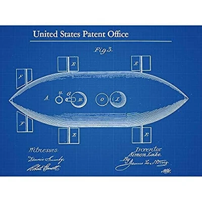 Artery8 Lake Submarine Vessel Top 1897 Patent Plan Unframed Wall Art Print Poster Home Decor Premium