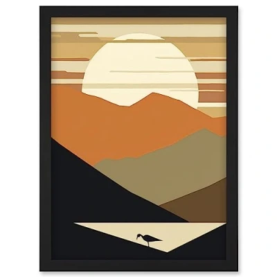 Artery8 Lakeside Mountain Sunset Boho Minimalism Landscape Artwork Framed Wall Art Print A4