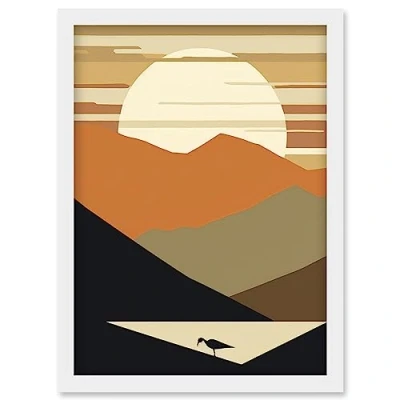 Artery8 Lakeside Mountain Sunset Boho Minimalism Landscape Artwork Framed Wall Art Print A4
