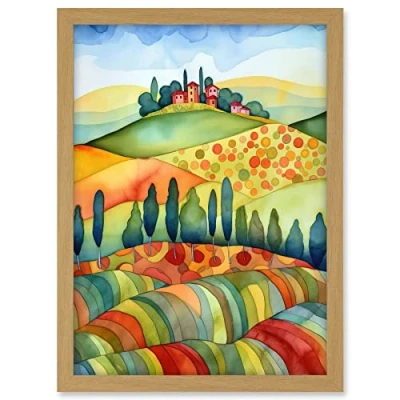 Artery8 Landscape Of Tuscany House On The Hill Folk Art Artwork Framed A3 Wall Print