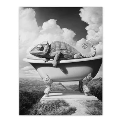 Artery8 Large Chameleon in Bathtub Black White Surreal Bathroom Toilet Wall Art Poster Print Thick Paper 18X24 Inch