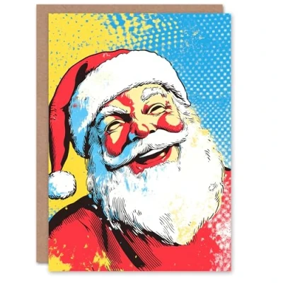 Artery8 Laughing Santa Claus Vibrant Comic Book Pop Art Blank For Him Or Her Christmas Card