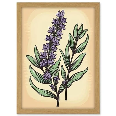 Artery8 Lavender Flower Old School USA Tattoo Ink Body Art Rockabilly Americana 50s Artwork Framed A3 Wall Print