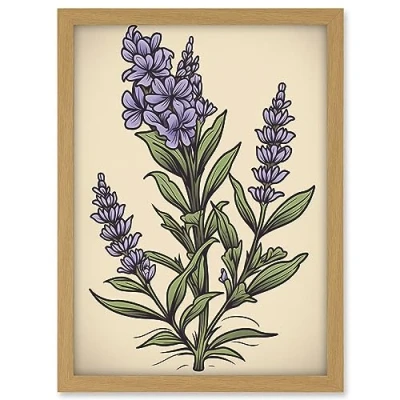 Artery8 Lavender Plant Old School USA Tattoo Ink Body Art Rockabilly Americana 50s Artwork Framed A3 Wall Print