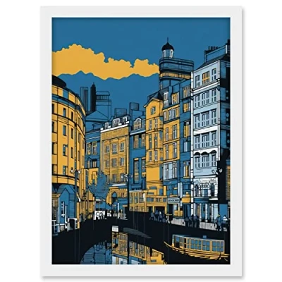 Artery8 Leeds Dock Cityscape Colour Block Illustration Artwork Framed A3 Wall Art Print