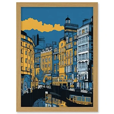 Artery8 Leeds Dock Cityscape Colour Block Illustration Artwork Framed A3 Wall Art Print