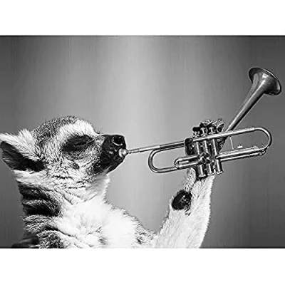Artery8 Lemur Playing Trumpet Black White Unframed Wall Art Print Poster Home Decor Premium