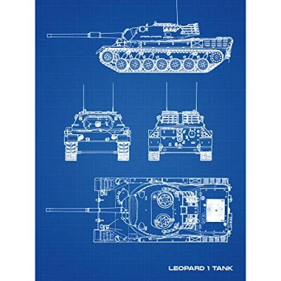 Artery8 Leopard 1 Main Battle Tank Military Blueprint Plan Premium Wall Art Canvas Print 18X24 Inch