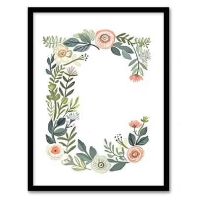 Artery8 Letter C in Simple Watercolour Flowers Leaves Floral Word Art For Her Birthday Mum Wife Woman Friend Artwork Framed Wall Print A4