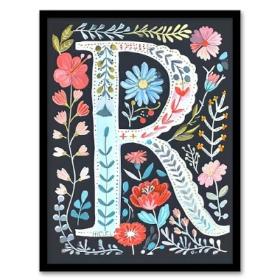 Artery8 Letter R in Bright Watercolour Flowers Cute Floral Word Art For Her Birthday Mum Wife Woman Friend Artwork Framed Wall Print A4