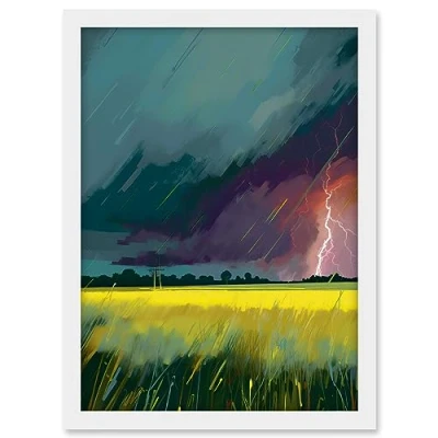 Artery8 Lightning Strike Over an Open Countryside Field Artwork Framed A3 Wall Art Print