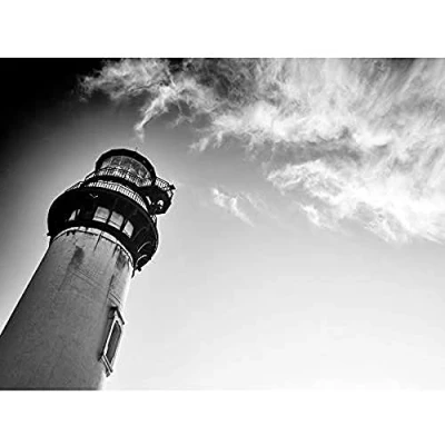 Artery8 Lightshouse Cloudy Sky Black White Photo Art Print Canvas Premium Wall Decor Poster Mural