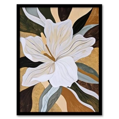 Artery8 Lily Flower Painting Earth Tone Delicate Floral Living Room Artwork Framed Wall Art Print A4