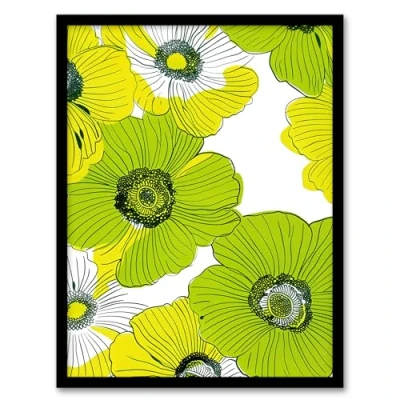 Artery8 Lime Green Anemone Flowers Floral Pattern Design For Living Room Artwork Framed Wall Art Print A4