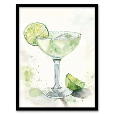 Artery8 Lime Green Margarita Cocktail Modern Watercolour Kitchen Artwork Framed Wall Art Print A4