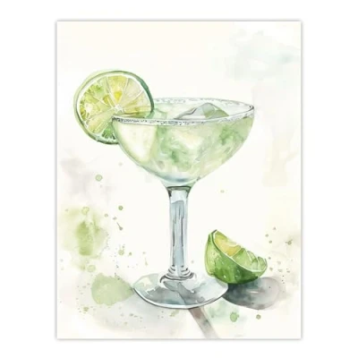 Artery8 Lime Green Margarita Cocktail Modern Watercolour Kitchen Extra Large XL Wall Art Poster Print