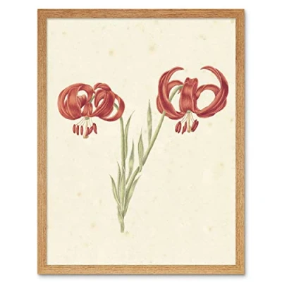Artery8 Lintheimer Red Lily Flowers Petals Painting Art Print Framed Poster Wall Decor 12x16 inch