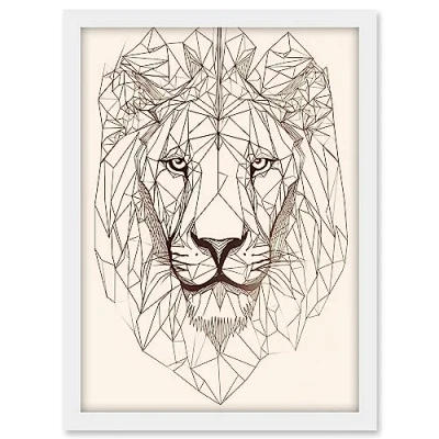 Artery8 Lion Head Polygon Line Drawing Portrait Artwork Framed A3 Wall Art Print