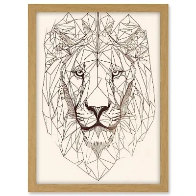 Artery8 Lion Head Polygon Line Drawing Portrait Artwork Framed A3 Wall Art Print