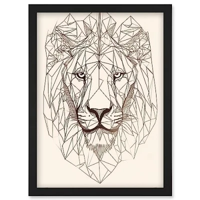 Artery8 Lion Head Polygon Line Drawing Portrait Artwork Framed Wall Art Print A4