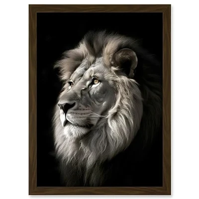 Artery8 Lion Head Portrait Dramatic Photograph Strong Leo Dark Atmospheric Light Artwork Framed A3 Wall Art Print