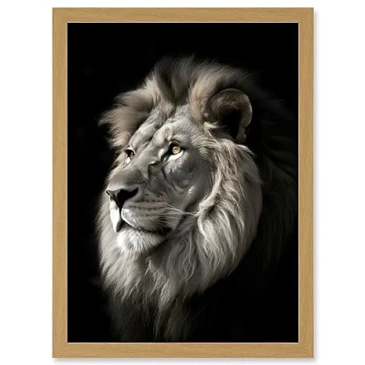Artery8 Lion Head Portrait Dramatic Photograph Strong Leo Dark Atmospheric Light Artwork Framed A3 Wall Art Print