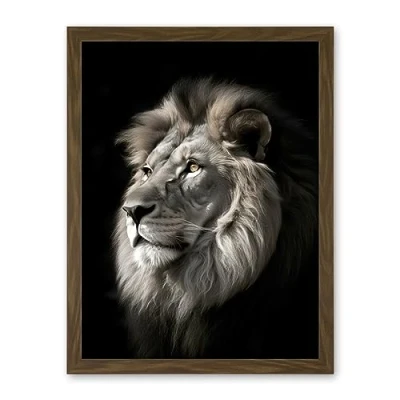 Artery8 Lion Head Portrait Dramatic Photograph Strong Leo Dark Atmospheric Light Artwork Framed Wall Art Print 18X24 Inch