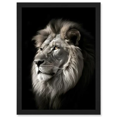 Artery8 Lion Head Portrait Dramatic Photograph Strong Leo Dark Atmospheric Light Artwork Framed Wall Art Print A4