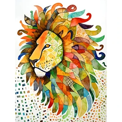Artery8 Lion's Head Multicoloured Folk Art Watercolour Painting Extra Large XL Wall Poster Print
