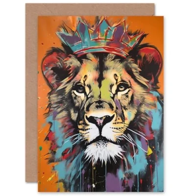 Artery8 Lion Wearing Crown Jungle King for Husband Him Dad Son Brother Birthday Thank You Congratulations Blank Art Greeting Card