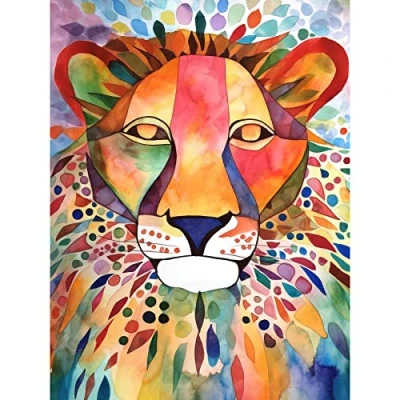 Artery8 Lion With Multicoloured Pattern Mane Folk Art Watercolour Painting Extra Large XL Wall Poster Print
