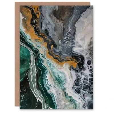 Artery8 Liquid Paint Emerald Gold Grey Abstract Painting Greeting Birthday Card Him Her All Blank