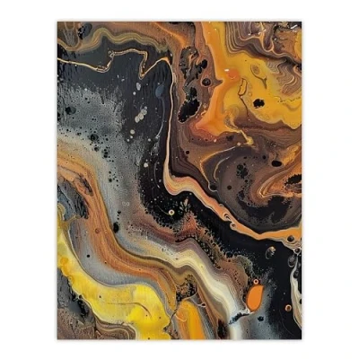 Artery8 Liquid Paint Gold Orange Grey Abstract Painting Living Room Bathroom Extra Large XL Wall Art Poster Print