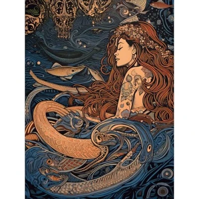 Artery8 Little Mermaid and Aquatic Animals Illustration Extra Large XL Wall Art Poster Print