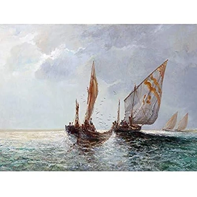Artery8 Littrow Fishing Boats Coast Seascape Painting Art Print Canvas Premium Wall Decor Poster Mural