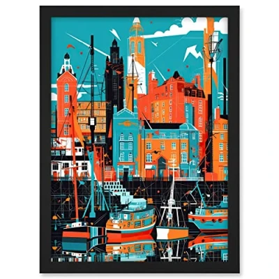 Artery8 Liverpool Royal Albert Dock Waterfront Cityscape Artwork Framed A3 Wall Art Print