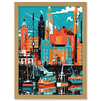 Artery8 Liverpool Royal Albert Dock Waterfront Cityscape Artwork Framed A3 Wall Art Print