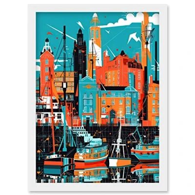 Artery8 Liverpool Royal Albert Dock Waterfront Cityscape Artwork Framed Wall Art Print A4