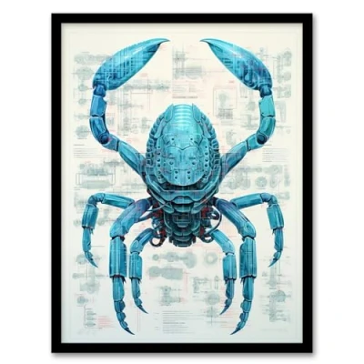 Artery8 Lobster Robot Hybrid Schematic Blueprint Futuristic Secret Complex Arcane Manuscript Gift For Him Man Cave Artwork Framed Wall Art Print A4