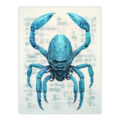 Artery8 Lobster Robot Hybrid Schematic Blueprint Futuristic Secret Complex Arcane Manuscript Gift For Him Man Cave Large Wall Art Poster Print Thick Paper 18X24 Inch