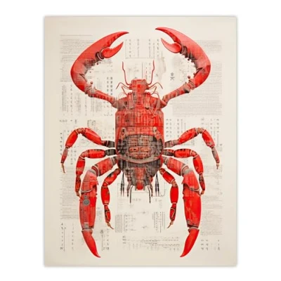 Artery8 Lobster Robot Hybrid Secret Military Schematic Blueprint Futuristic Complex Arcane Manuscript Gift For Him Man Cave Extra Large XL Wall Art Poster Print