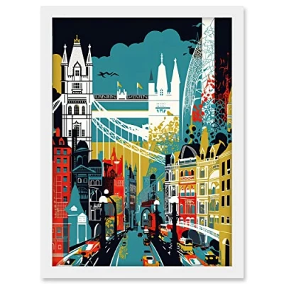 Artery8 London Iconic Landmarks Modern Abstract Cityscape Artwork Framed A3 Wall Art Print
