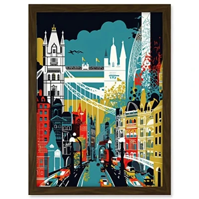 Artery8 London Iconic Landmarks Modern Abstract Cityscape Artwork Framed A3 Wall Art Print