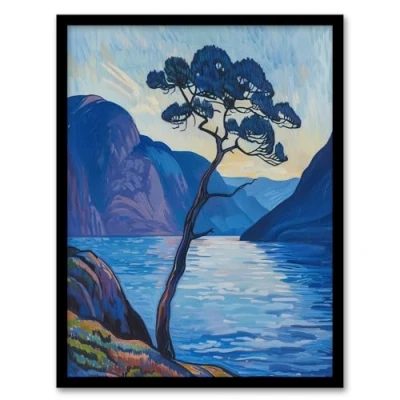 Artery8 Lone Tree on Loch Ness Scottish Highlands Lake Living Room Artwork Framed Wall Art Print A4