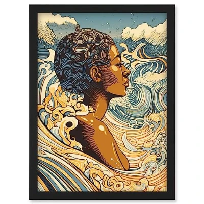 Artery8 Love of the Sea Summer Swim Modern Illustration Artwork Framed Wall Art Print A4