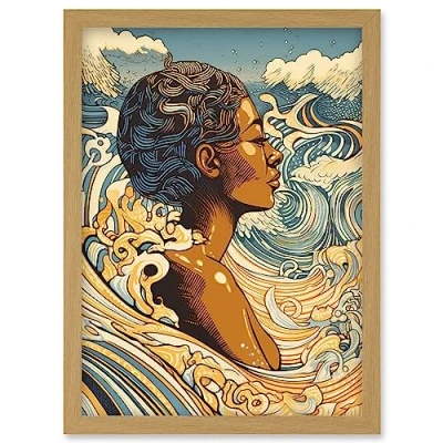 Artery8 Love of the Sea Summer Swim Modern Illustration Artwork Framed Wall Art Print A4