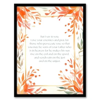 Artery8 Love Your Enemies Orange Sermon on the Mount Jesus Christ Christian Bible Faith God Quote Revelations Flowers Artwork Framed Wall Art Print A4