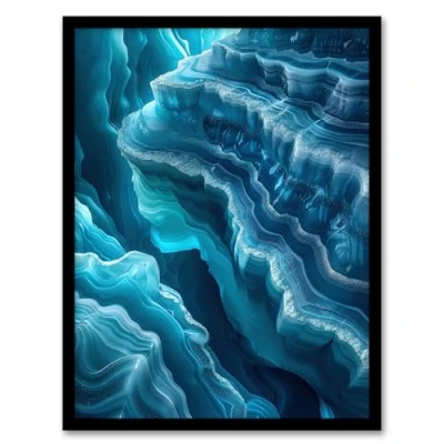 Artery8 Luminescent Blue Ice Glacier Abstract Canyon For Living Room Artwork Framed Wall Art Print A4